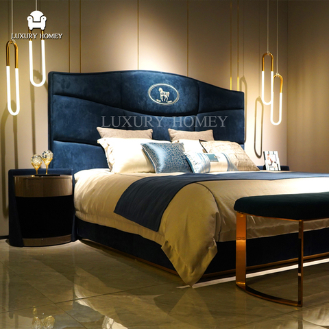 Muebles de dormitorio de gama alta, juego de cama tapizado de terciopelo italiano, camas dobles modernas de lujo, cabecero de terciopelo, juego de cama King Size