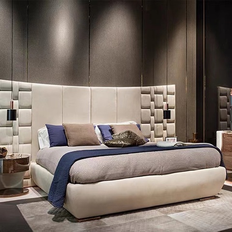 Conjunto de muebles de dormitorio de lujo italiano de gama alta, cama doble de cuero, cabecero grande, conjunto de dormitorio moderno de diseñador tamaño King